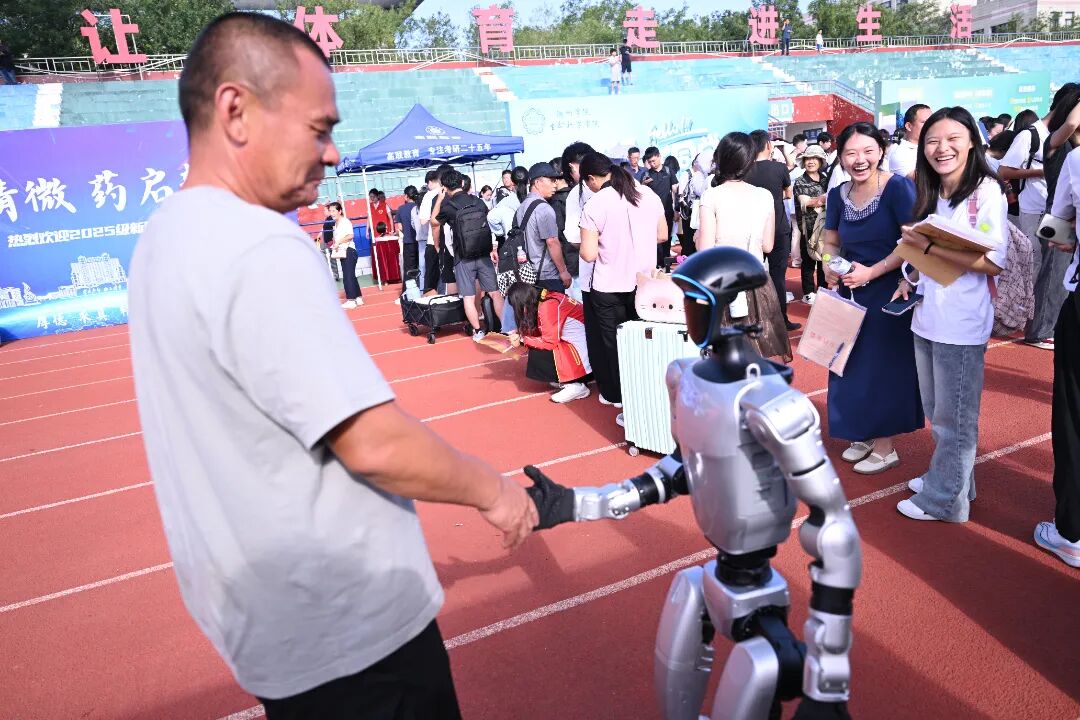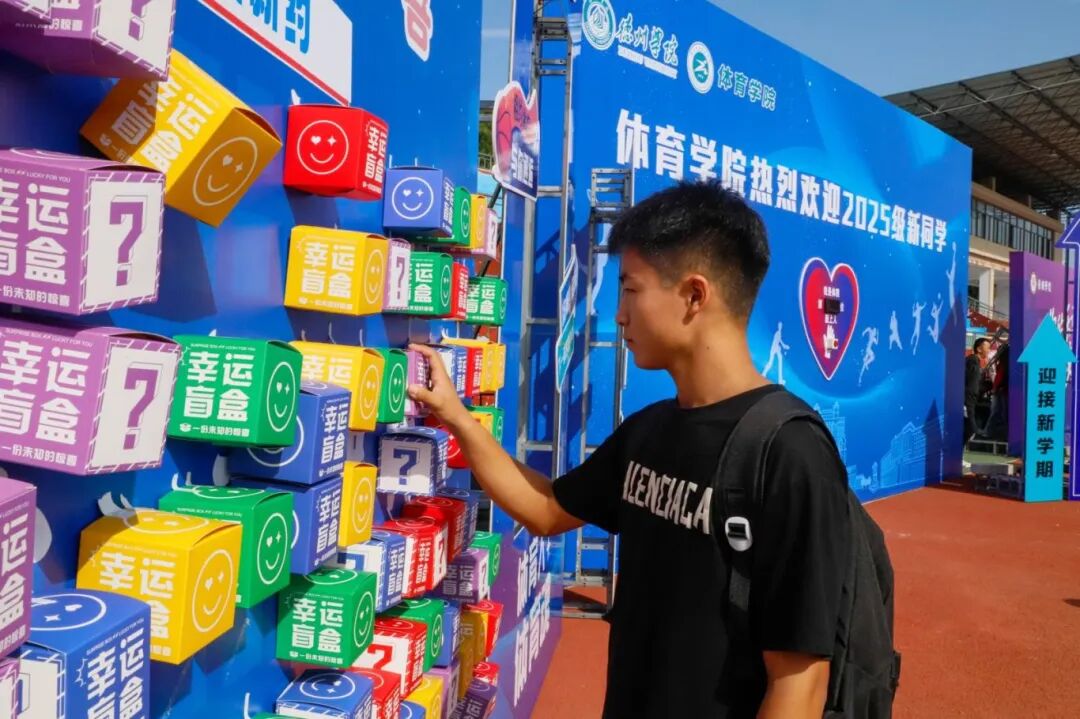 匠心巧思点亮迎新现场。文学与历史文化学院的干花书签散发着淡雅墨香,物电学院的人形机器人舞动科技韵律,美术学院的书法漆扇流转东方美学。体育学院的拆盲盒惊喜跃动青春心跳,化学化工学院的院徽香皂凝结芬芳,生态与资源环境学院的插花定格自然灵韵。纺织服装学院的鲁锦华服织就千年文脉,健康医学院的签名墙镌刻未来期许,音乐学院的即兴演奏谱响时光和弦,能源与机械医学院的种子纸播撒梦想之花……