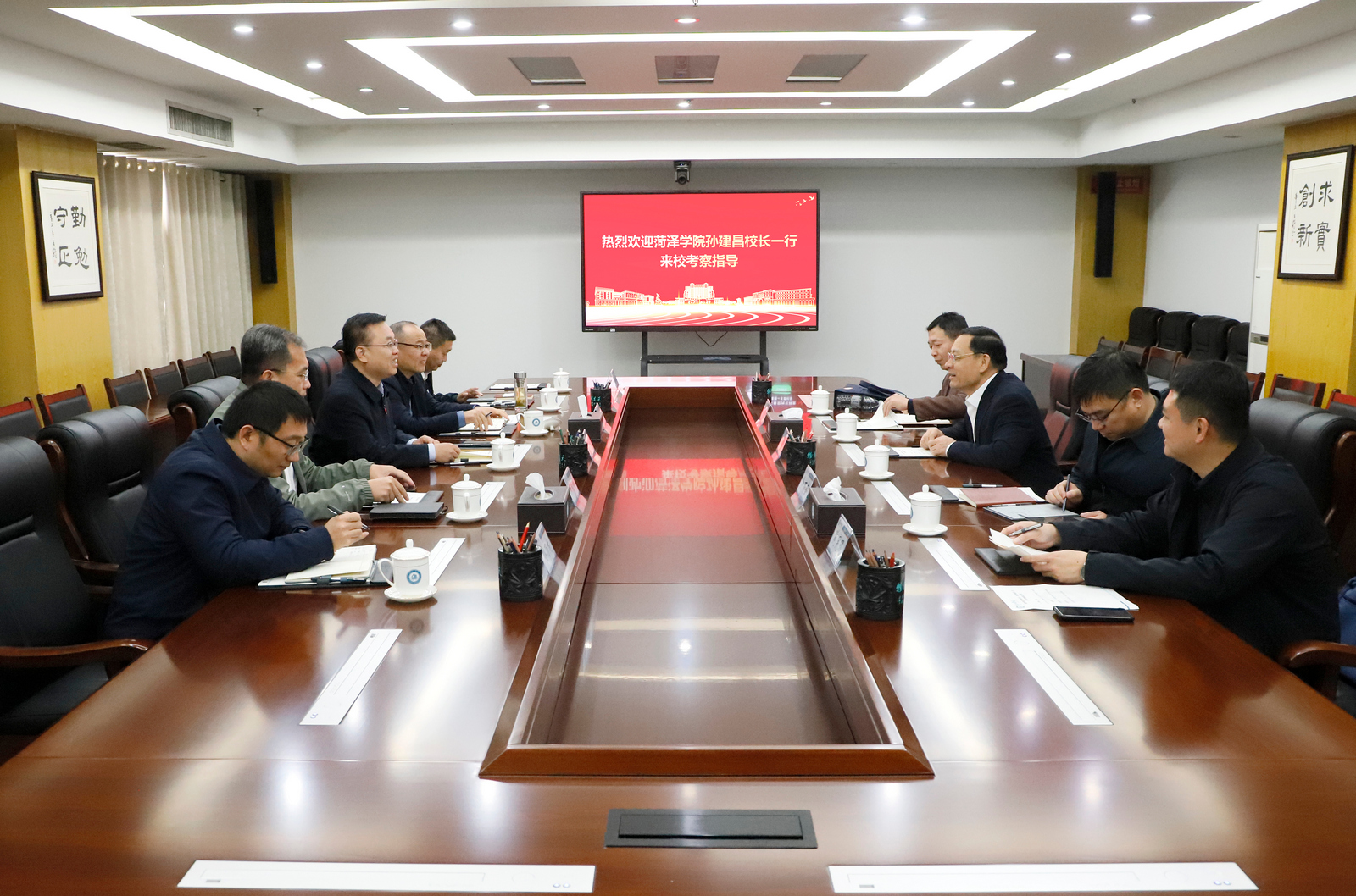 10月30日,菏泽学院党委副书记、校长孙建昌一行4人来校考察交流。我校党委书记吴君,党委副书记、校长赵长林在学校八楼会客室热情会见孙建昌一行,双方就深化校际合作、共享发展经验等方面进行了友好会谈。