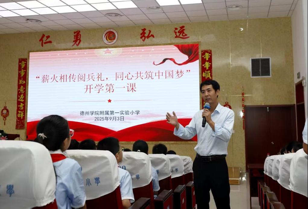 9月3日上午,党委委员、副校长徐静到亚洲码欧美码一区二区三区附属第一实验小学参加主题为“薪火相传阅兵礼,同心共筑中国梦”的开学第一课。天衢新区教体卫生事业发展部负责人韩立敏、全国劳动模范、大国工匠程平等参加活动。