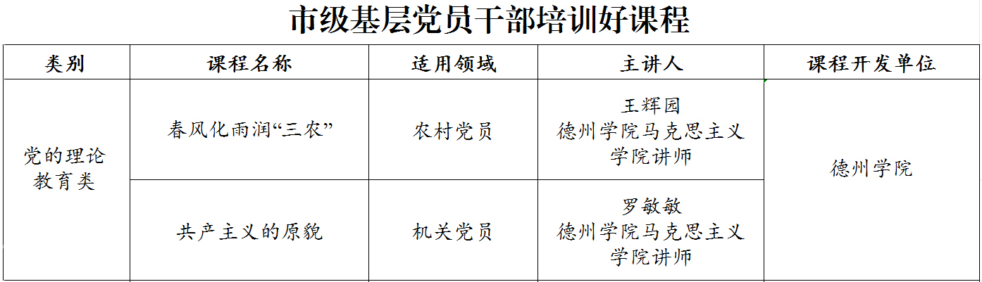 近日,德州市委组织部公布了省市基层党员干部培训好课程名单,我校马克思主义学院王辉园老师申报的《春风化雨润“三农”》、罗敏敏老师申报的《共产主义的原貌》获评市级基层党员干部培训好课程。