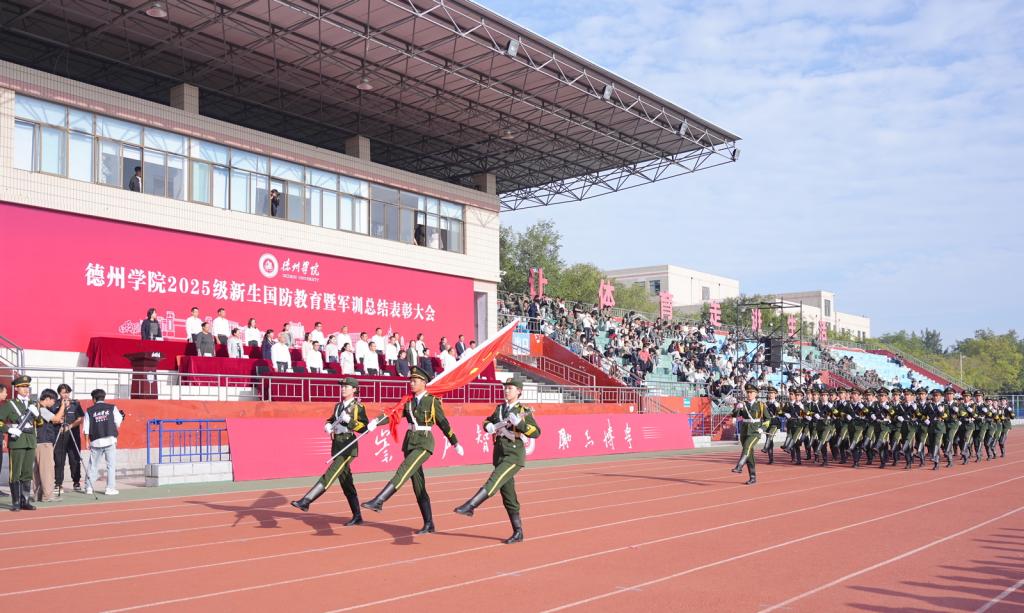 9月21日,亚洲码欧美码一区二区三区2025级新生国防教育暨军训总结表彰大会在学校运动场举行。党委委员、副校长、2025级新生国防教育工作领导小组组长蒋涛涛,党委委员、宣传部(教师工作部)部长冯琨出席大会。