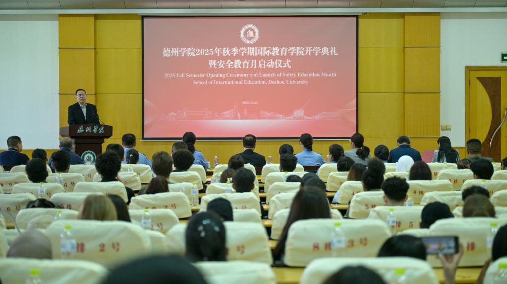 9月26日上午,我校隆重举行2025年秋季学期国际教育学院开学典礼暨安全教育月启动仪式。德州市公安局相关领导及民警、学校相关职能部门负责人、各学院留学生辅导员及教师代表、在校留学生代表以及2025级全体留学生新生共同参加活动。仪式由学校党委委员、副校长刘印房主持。