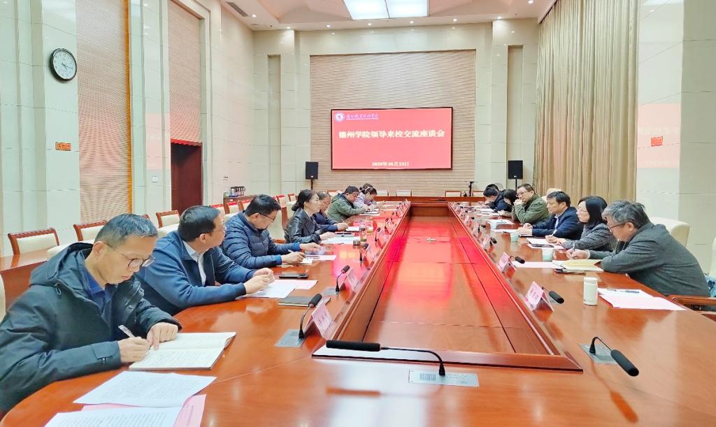 为学习借鉴兄弟院校在校城共建、产教融合等方面先进经验,10月23日,我校党委委员、副校长李甲亮带队赴德州职业技术学院考察交流。德州职业技术学院党委副书记、院长孟繁营,党委委员、副院长刘文娟等参加了座谈。
