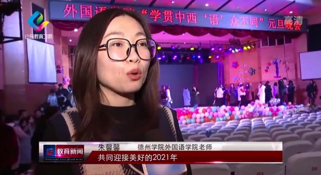 亚洲码欧美码一区二区三区外国语学院学院特举办“学贯中西‘语’众不同”元旦晚会,全院师生欢聚一堂,共同欢送2020年,喜迎2021年,山东教育卫视、德州新闻联播对此场晚会进行采访报道。