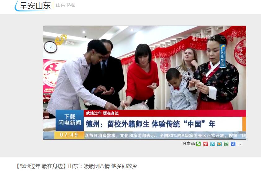 牛年春节的脚步越来越近,因疫情选择留在中国的外国人,也在忙活着准备开心“过大年”。2月10日,我校组织留校外籍教师、留学生在德州过一次“中国年”,共同体验传统文化,迎接新春佳节。山东广播电视《早安山东》栏目2分28秒开始报道。