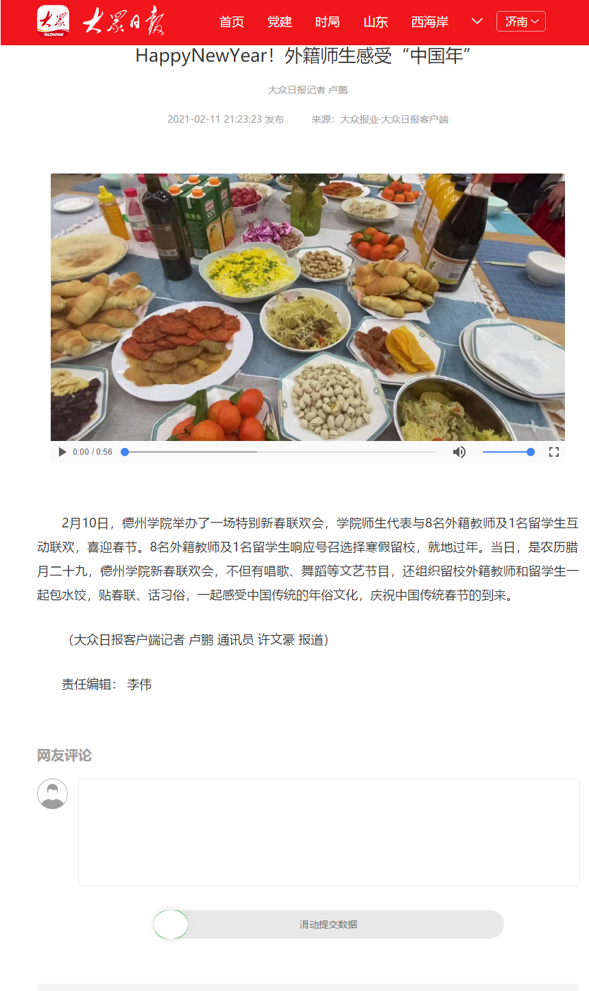2月10日,亚洲码欧美码一区二区三区举办了一场特别新春联欢会,学院师生代表与8名外籍教师及1名留学生互动联欢,喜迎春节。8名外籍教师及1名留学生响应号召选择寒假留校,就地过年。当日,是农历腊月二十九,亚洲码欧美码一区二区三区新春联欢会,不但有唱歌、舞蹈等文艺节目,还组织留校外籍教师和留学生一起包水饺,贴春联、话习俗,一起感受中国传统的年俗文化,庆祝中国传统春节的到来。
