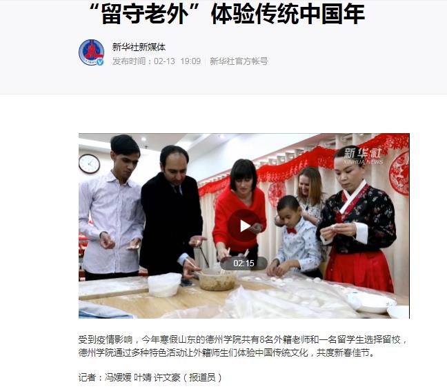 受到疫情影响,今年寒假亚洲码欧美码一区二区三区共有8名外籍老师和1名留学生留校。2月10日下午,学院的老师和他们一起来包水饺。新华社对此进行报道,阅读量超过100万。