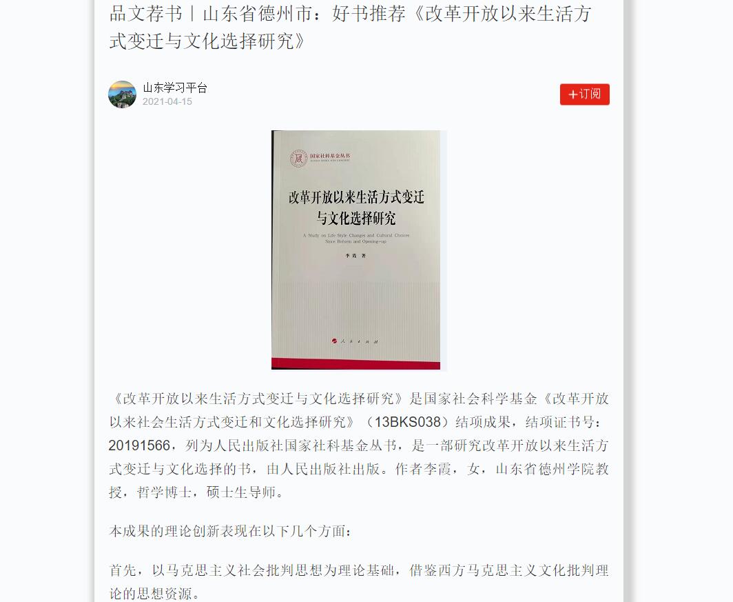 【学习强国】品文荐书|《改革开放以来生活方式变迁与文化选择研究》