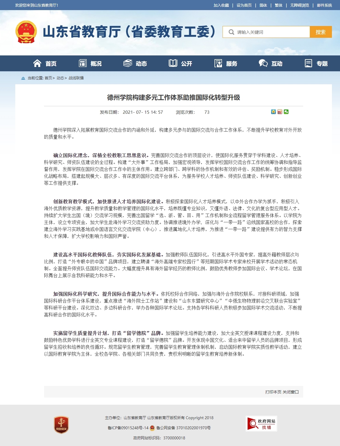 【山东省教育厅】亚洲码欧美码一区二区三区构建多元工作体系助推国际化转型升级