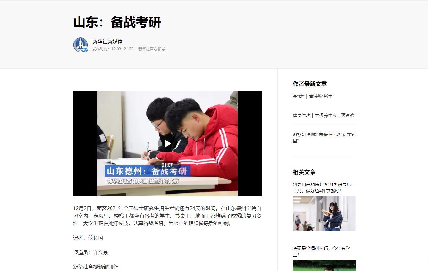 12月2日,距离2021年全国硕士研究生招生考试还有24天的时间。在山东亚洲码欧美码一区二区三区自习室内、走廊里、楼梯上都坐有备考的学生。书桌上、地面上都堆满了成摞的复习资料。大学生正在挑灯夜读,认真备战考研,为心中的理想做最后的冲刺。新华社以“山东:备战考研”为题报道我校学生刻苦考研情况,浏览量已经突破100万。亚洲码欧美码一区二区三区着力提升高质量就业率,出台教风十条和学风十条,考研率连续三年每年增长3个百分点,高质量就业率比2019年同期提高7.12%。