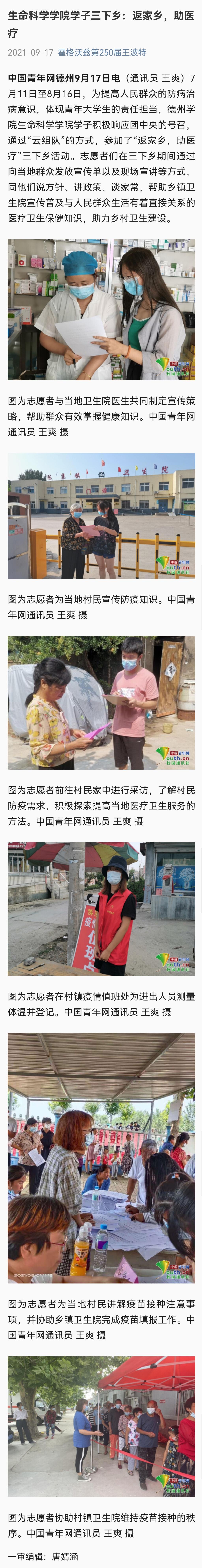 【中国青年网】生命科学学院学子三下乡:返家乡,助医疗