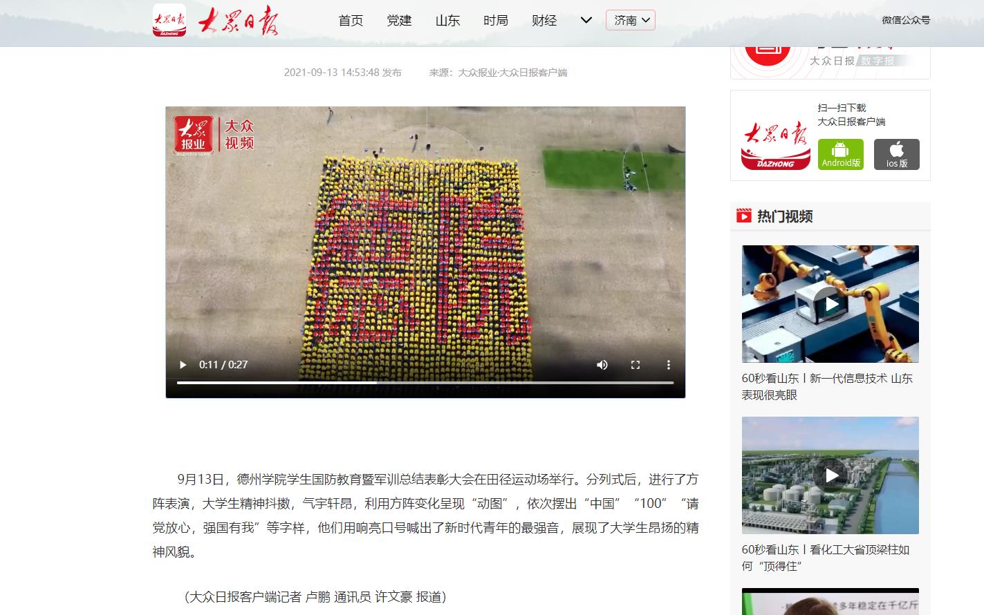 9月13日,亚洲码欧美码一区二区三区学生国防教育暨军训总结表彰大会在田径运动场举行。分列式后,进行了方阵表演,大学生精神抖擞,气宇轩昂,利用方阵变化呈现“动图”,依次摆出“中国”“100”“请党放心,强国有我”等字样,他们用响亮口号喊出了新时代青年的最强音,展现了大学生昂扬的精神风貌。